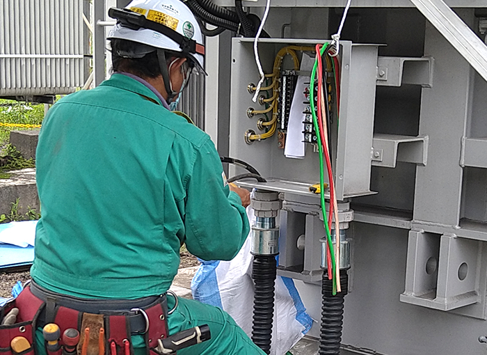各地の発電所や変電所における電気設備工事や周辺機器の更新、点検などを行っております。